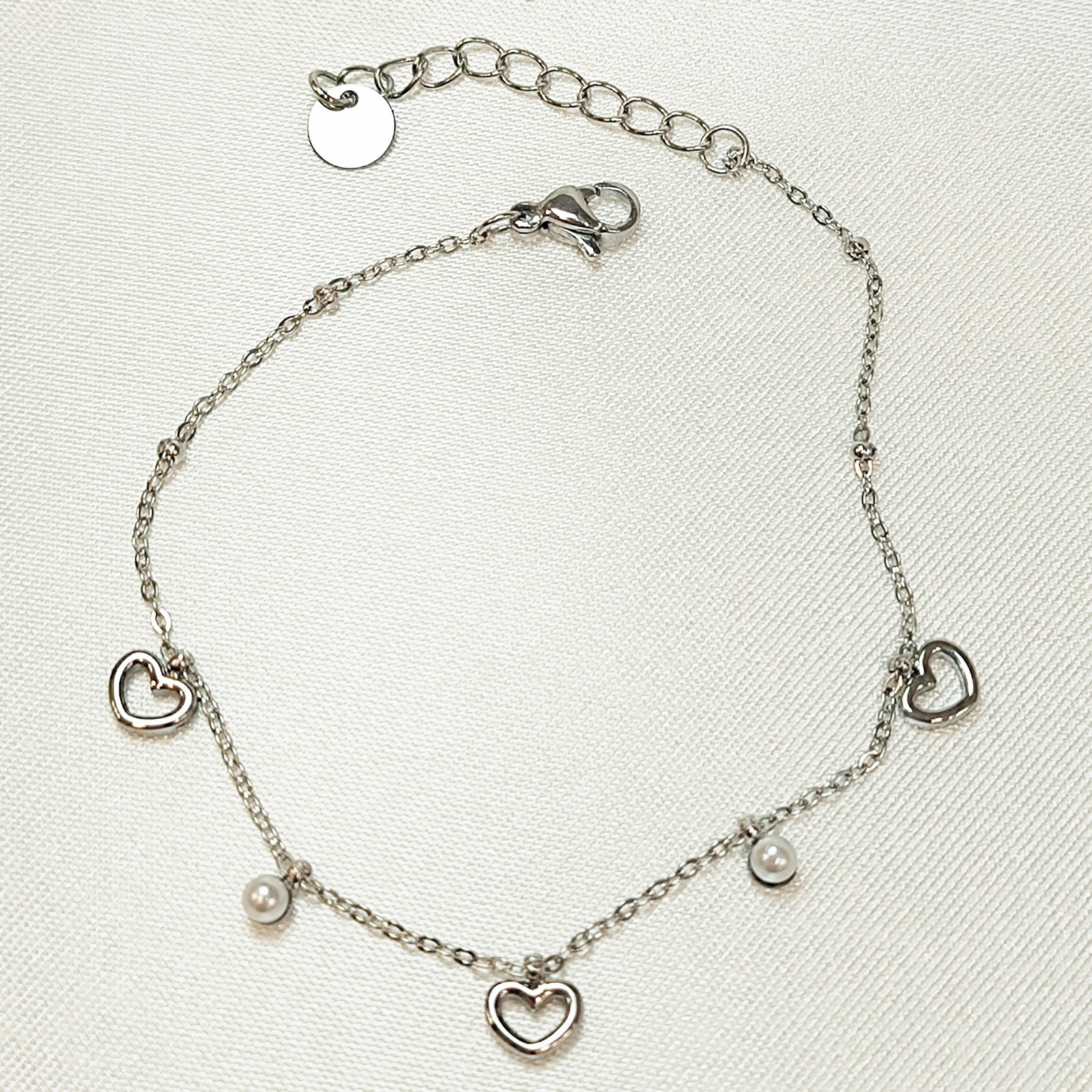 Βραχιόλι heart ανοξείδωτο ατσάλι διακοσμημένο με πέρλα.