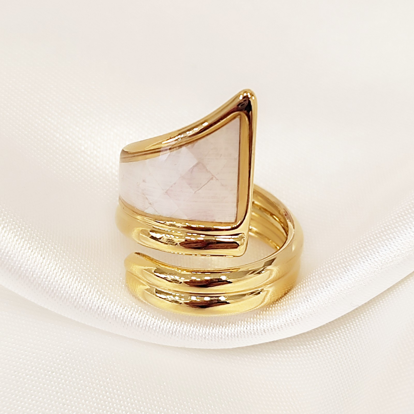 Δαχτυλίδι από ανοξείδωτο ατσάλι επίχρυσο διακοσμημένο με όστρακο. Μέγεθος one size.