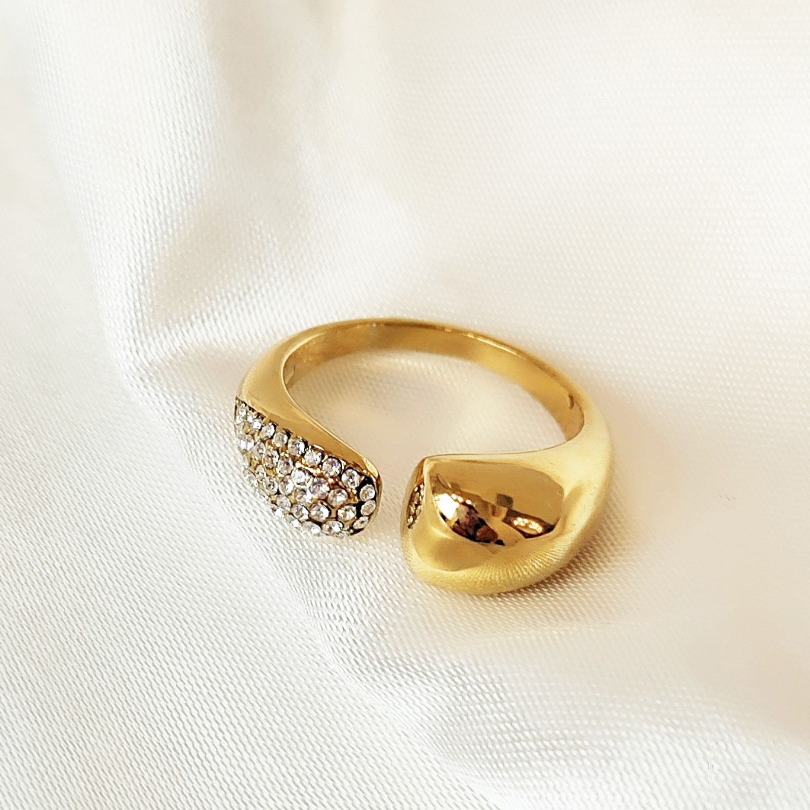 Δαχτυλίδι zircon από ανοξείδωτο ατσάλι επίχρυσο διακοσμημένο με ζιρκόνια. Μέγεθος one size.