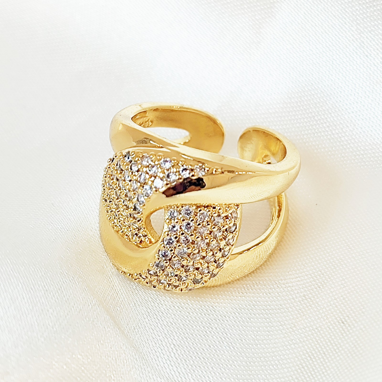 Δαχτυλίδι zircon από ανοξείδωτο ατσάλι επίχρυσο διακοσμημένο με ζιρκόνια. Μέγεθος one size.