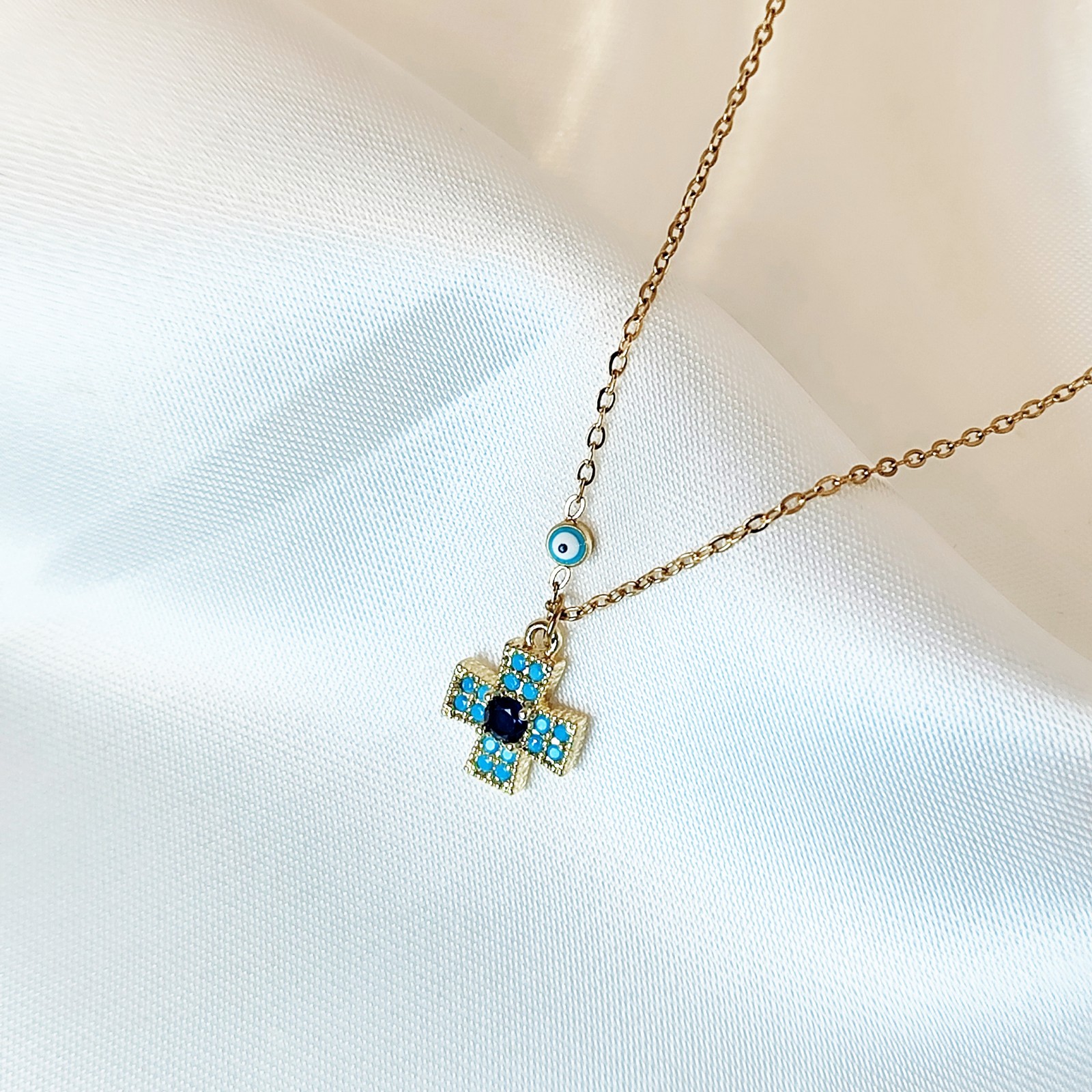 Κολιέ από ανοξείδωτο ατσάλι επίχρυσο διακοσμημένο με ζιρκόνια.