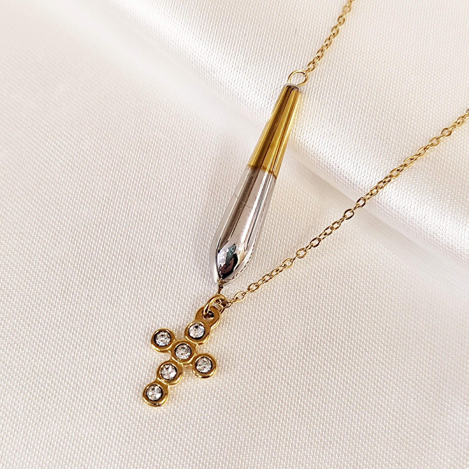Κολιέ από ανοξείδωτο ατσάλι επίχρυσο διακοσμημένο με ζιρκόνια.