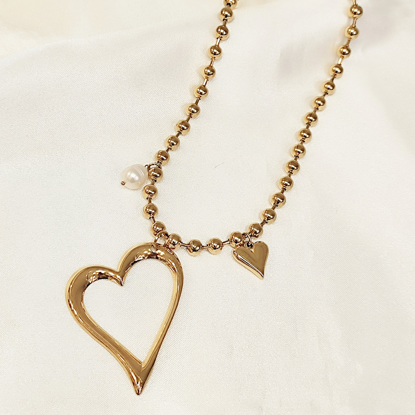 Κολιέ από ανοξείδωτο ατσάλι επίχρυσο διακοσμημένο με μαργαριτάρι.