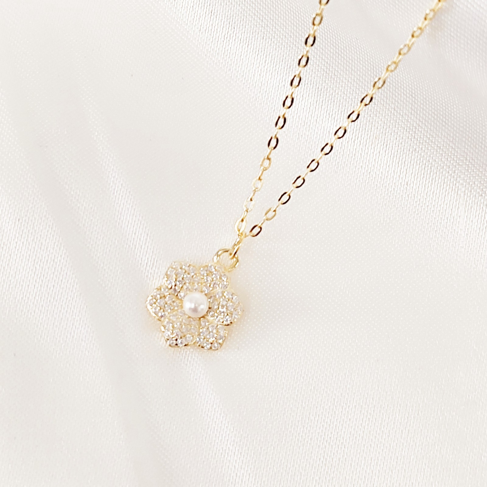 Κολιέ από ασήμι 925 επίχρυσο διακοσμημένο με ζιρκόνια και πέρλα.