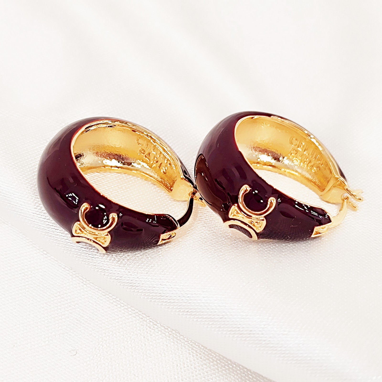 Σκουλαρίκια από ανοξείδωτο ατσάλι επίχρυσα διακοσμημένα με σμάλτο.