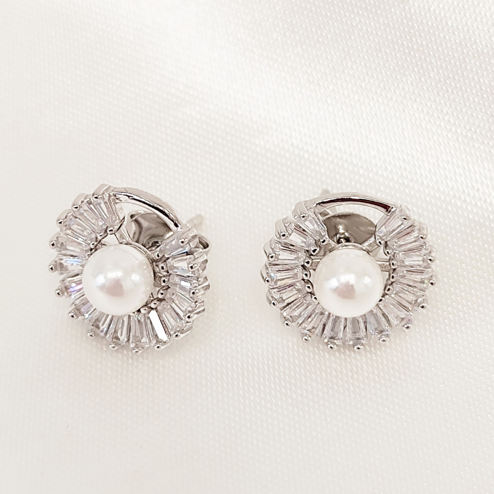 Σκουλαρίκια από ασήμι 925 διακοσμημένο με ζιρκόνια και μαργαριτάρια.