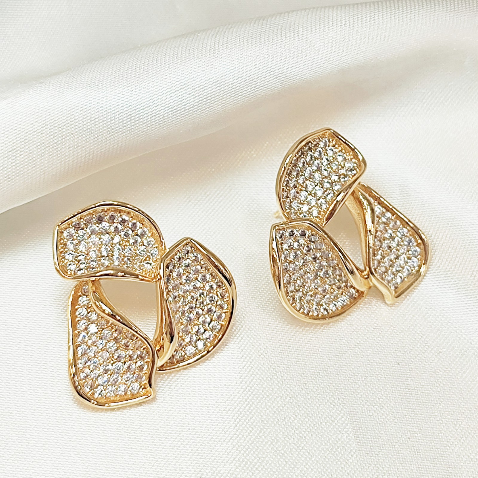 Σκουλαρίκια από ανοξείδωτο ατσάλι επίχρυσα διακοσμημένα με ζιρκόνια.