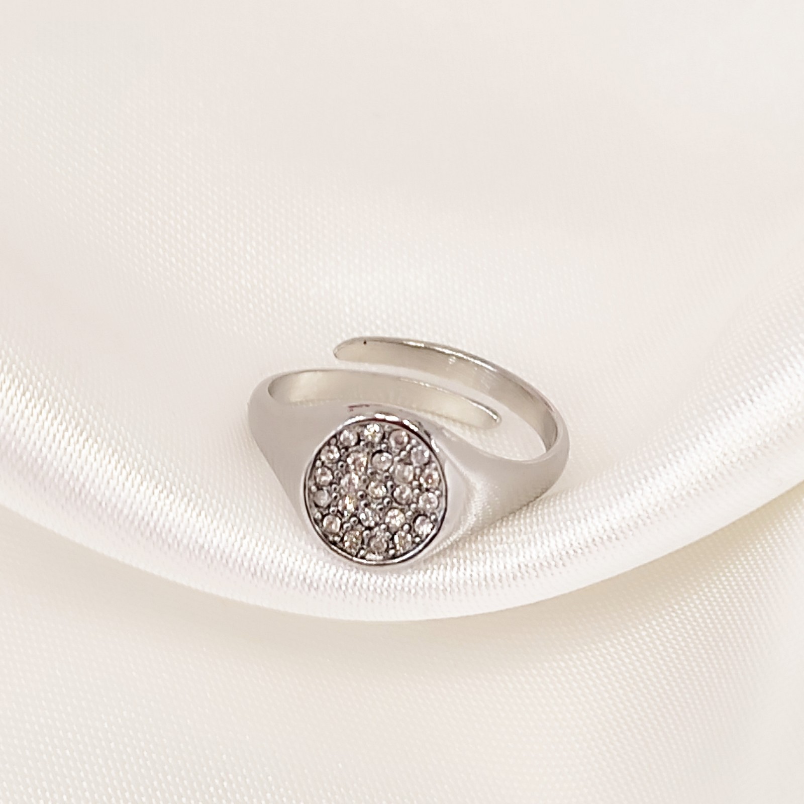Δαχτυλίδι από ανοξείδωτο ατσάλι διακοσμημένο με ζιρκόνια. Μέγεθος one size.