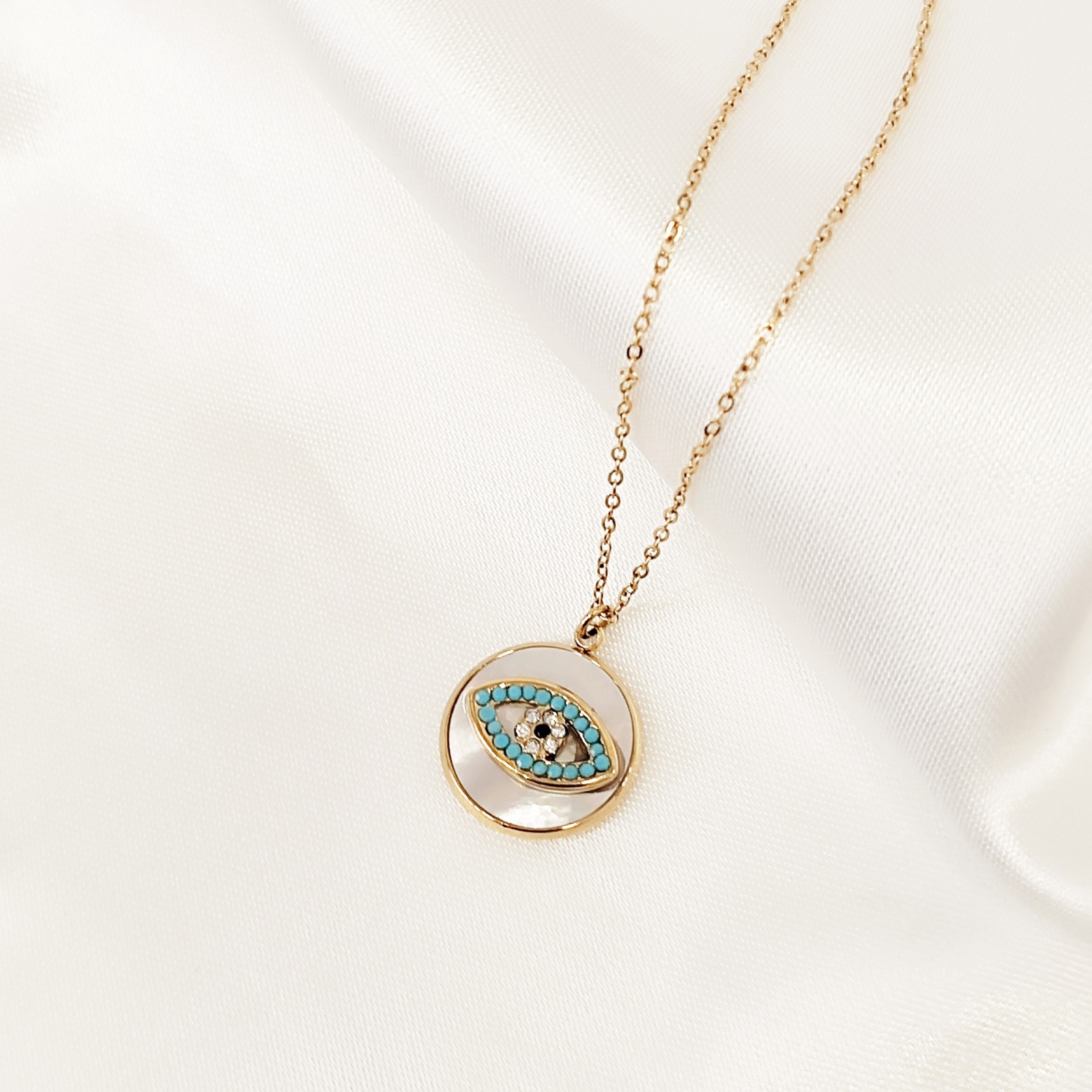 Κολιέ από ανοξείδωτο ατσάλι επίχρυσο διακοσμημένο με σμάλτο και ζιργκόν.