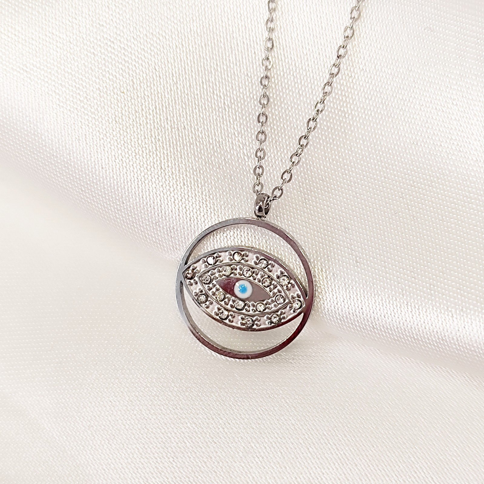 Κολιέ από ανοξείδωτο ατσάλι διακοσμημένο με ζιρκόνια.