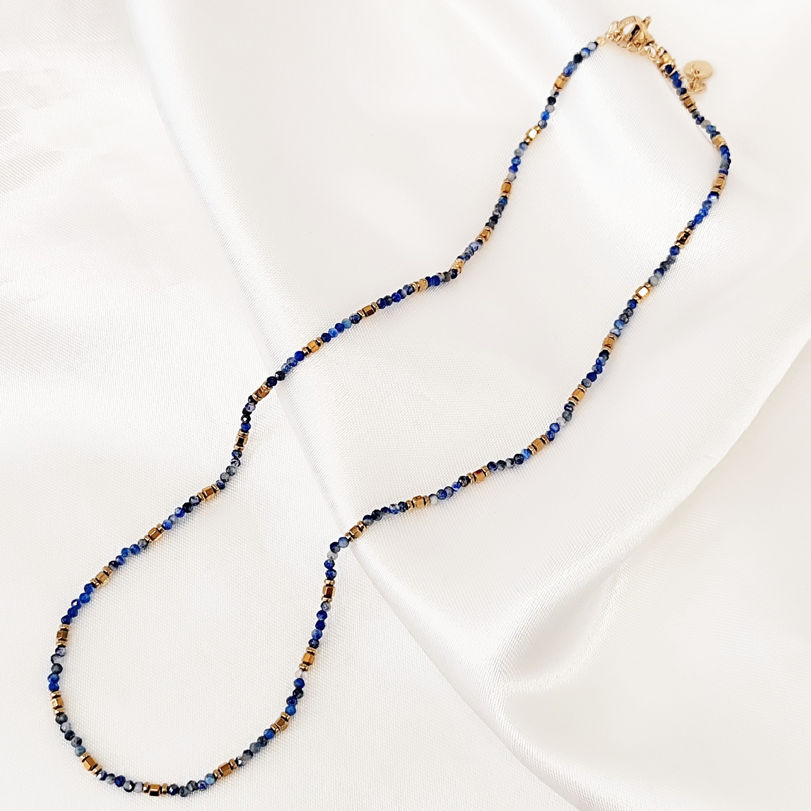 Κολιέ από ανοξείδωτο ατσάλι με ημιπολύτιμους λίθους σοδαλίτη.