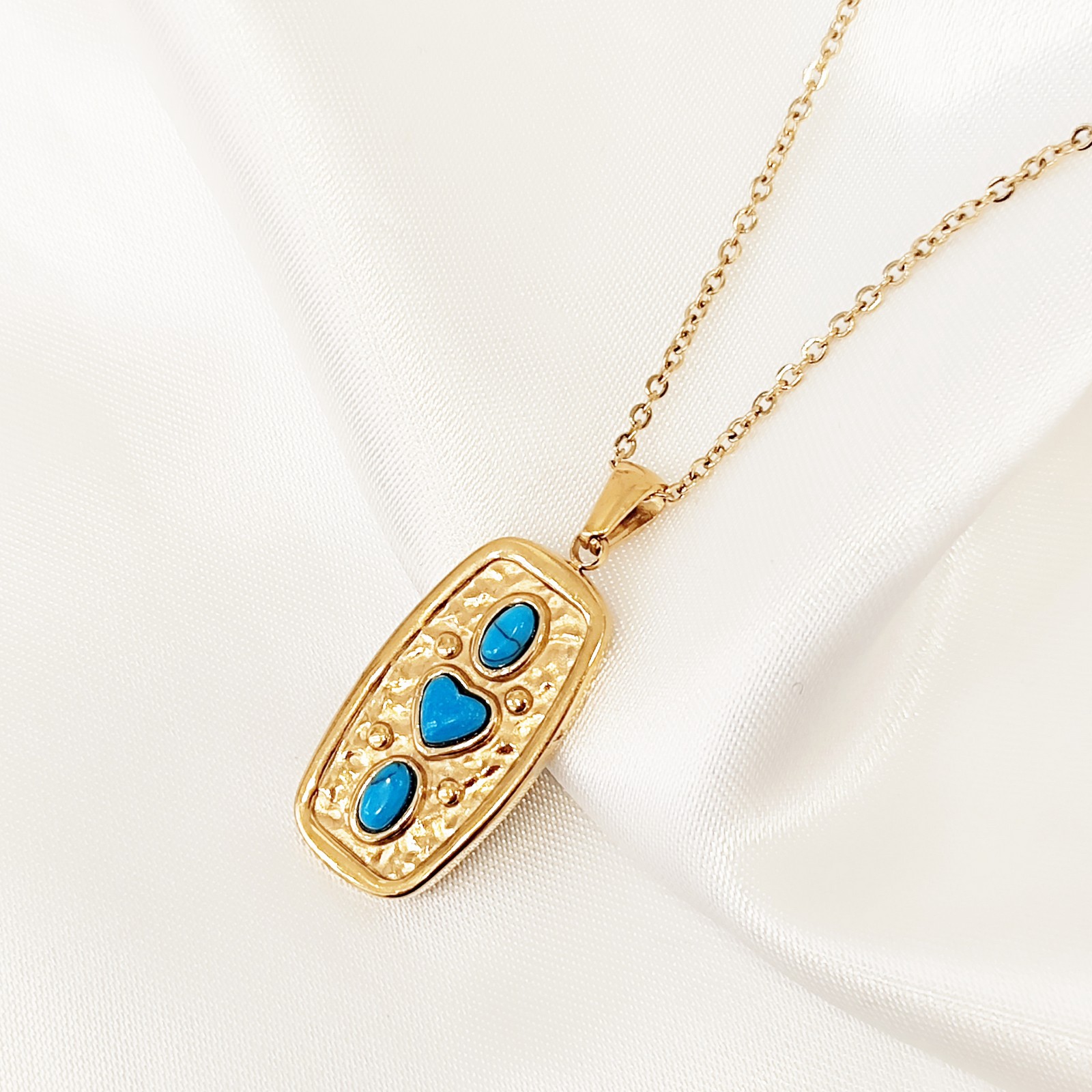 Κολιέ από ανοξείδωτο ατσάλι με ημιπολύτιμους λίθους τυρκουάζ.