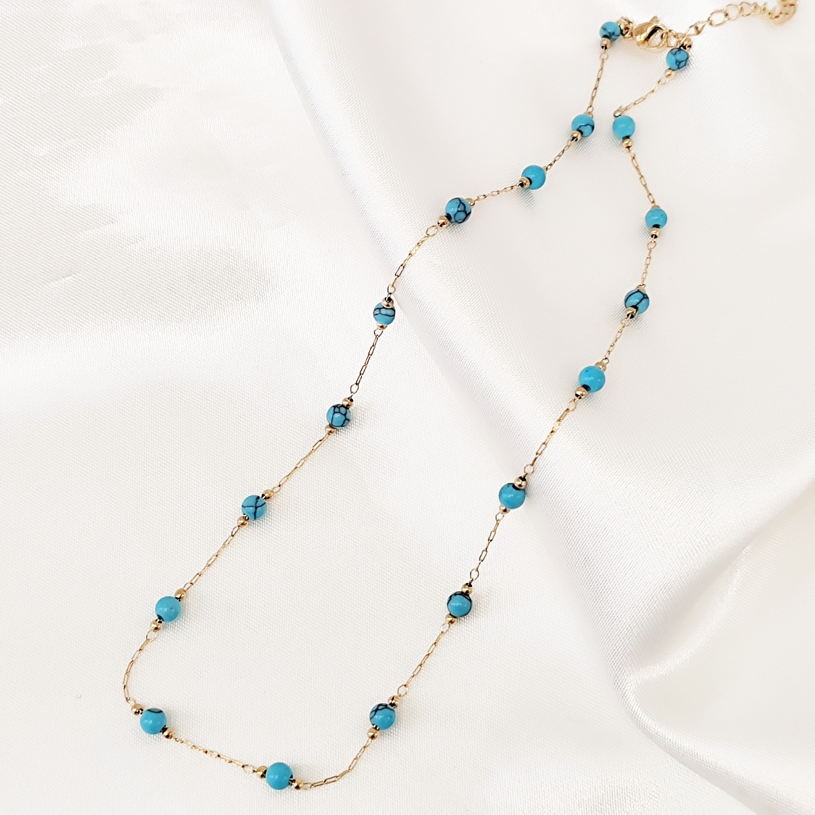 Κολιέ από ανοξείδωτο ατσάλι με ημιπολύτιμους λίθους τυρκουάζ.
