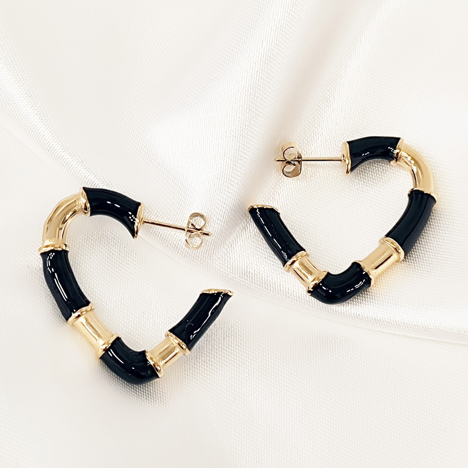 Σκουλαρίκια από ανοξείδωτο ατσάλι επίχρυσα διακοσμημένα με σμάλτο.