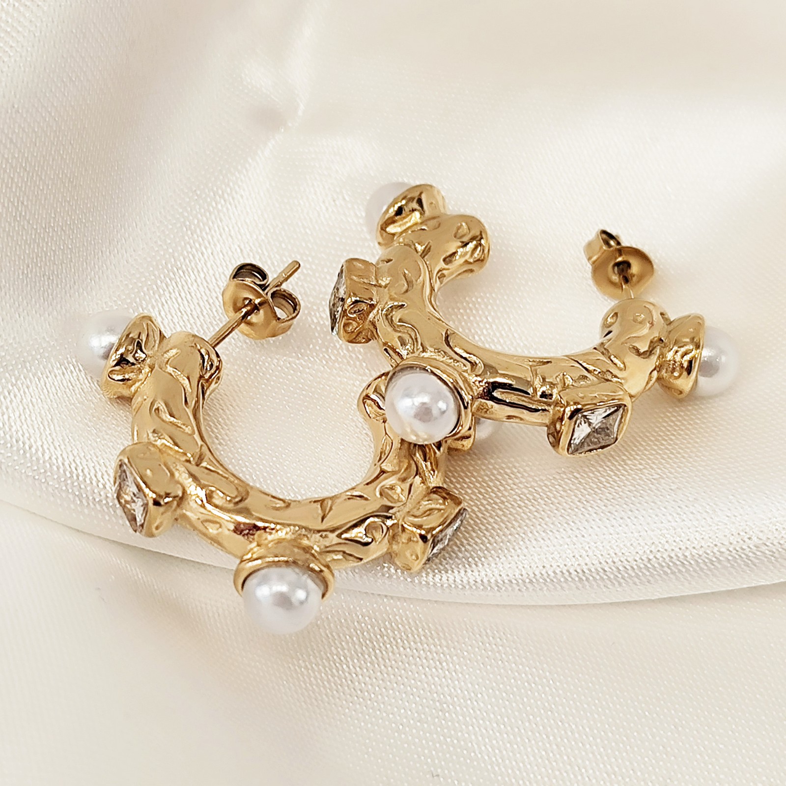 Σκουλαρίκια από ανοξείδωτο ατσάλι επίχρυσα διακοσμημένα με πέρλα και ζιργκόν.