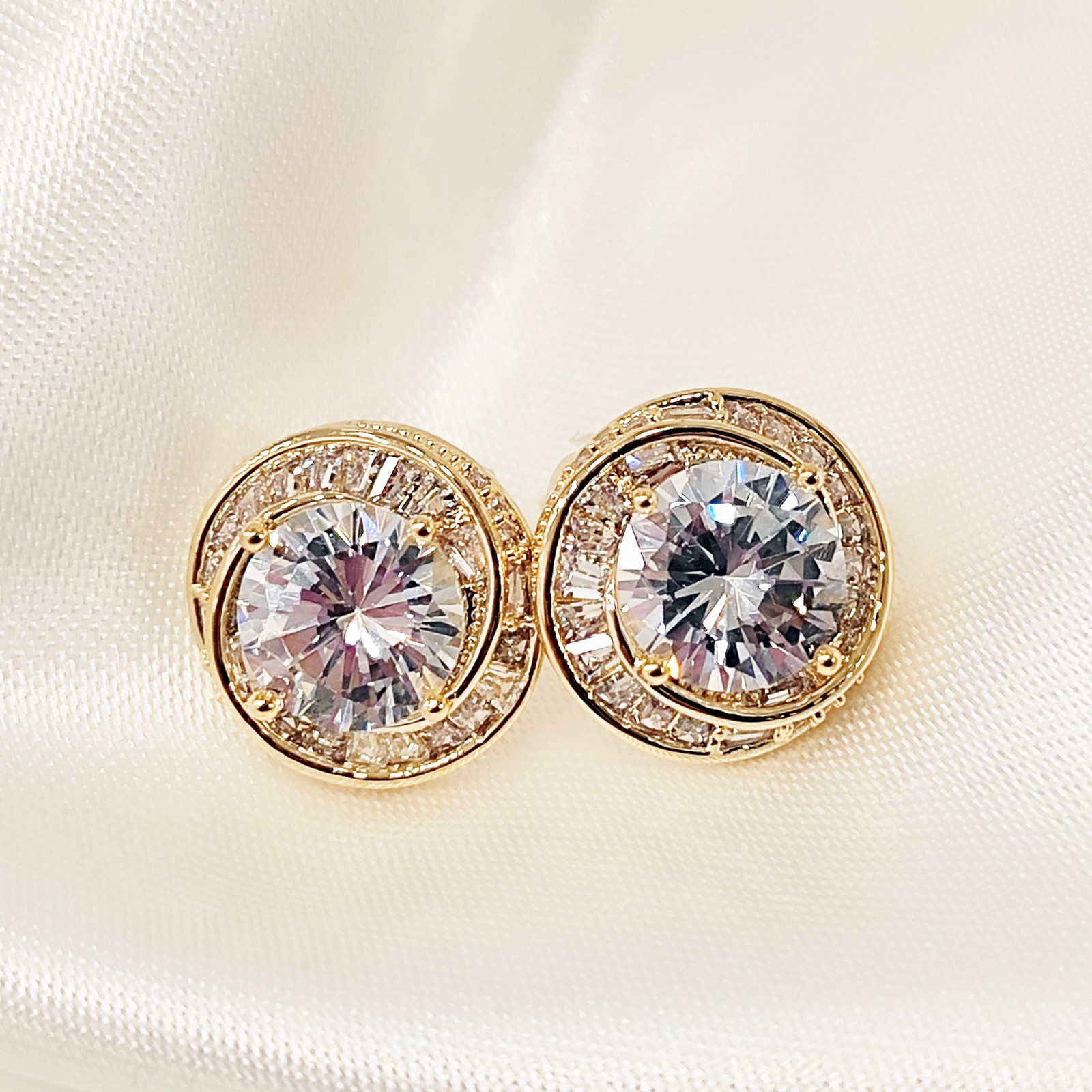 Σκουλαρίκια από ανοξείδωτο ατσάλι επίχρυσα διακοσμημένα με ζιρκόνια.